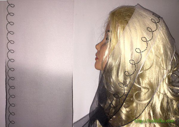 | Утененный узкий бело-черный нейлоновый шарф с наклееным черным узором |