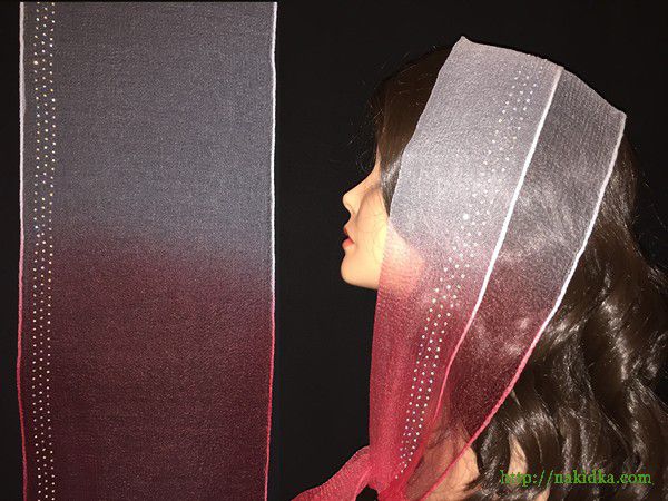 | Утененный белый с красным нейлоновый шарф с наклееным перламутровым узором |