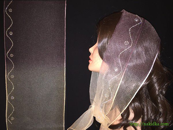 | Утененный коричневый с бежевым нейлоновый шарф с наклееным перламутровым узором |
