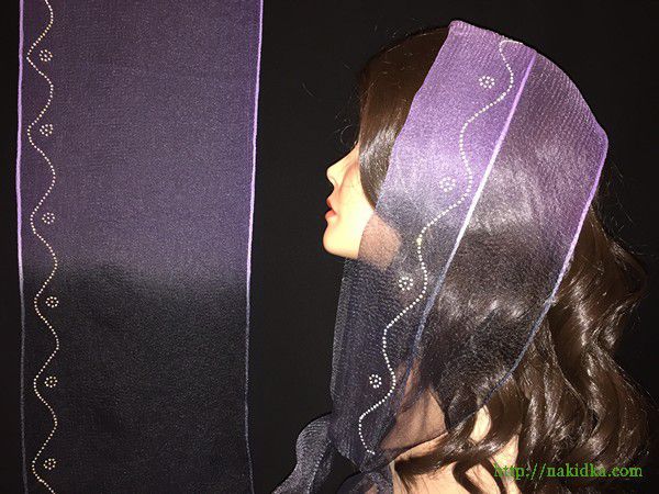 | Утененный светло-фиолетовый с черным нейлоновый шарф с наклееным перламутровым узором |
