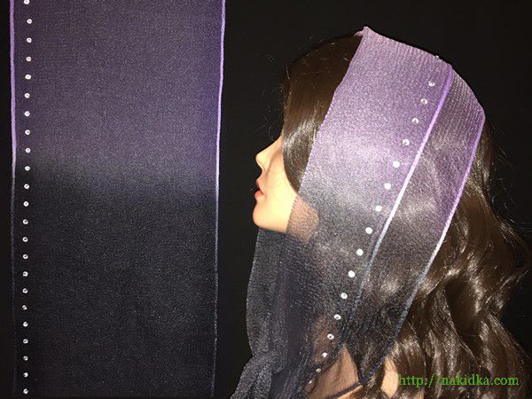 | Утененный светло-фиолетовый с черным нейлоновый шарф с наклееным перламутровым узором |
