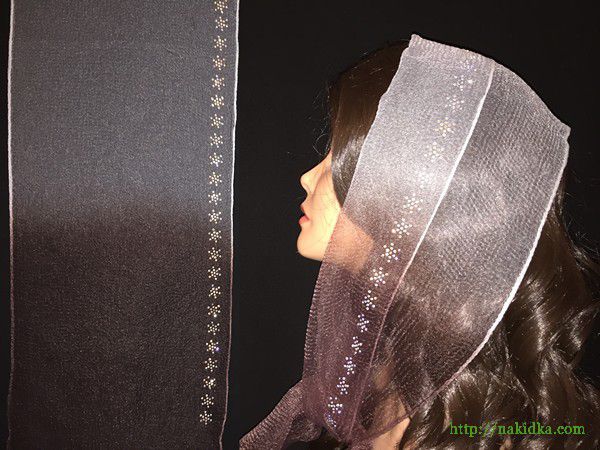 | Утененный белый с коричневым нейлоновый шарф с наклееным перламутровым узором |