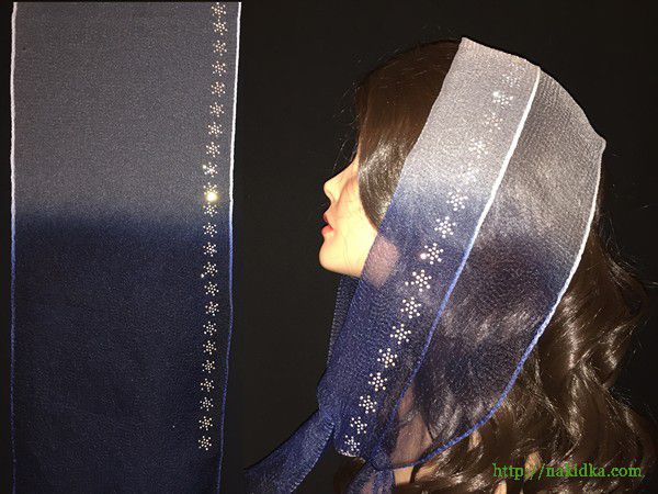 | Утененный белый с темно-синим нейлоновый шарф с наклееным перламутровым узором |