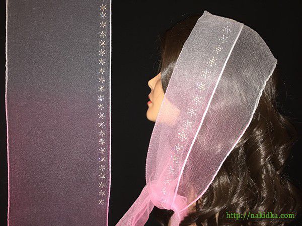 | Утененный белый со светло-розовым нейлоновый шарф с наклееным перламутровым узором |