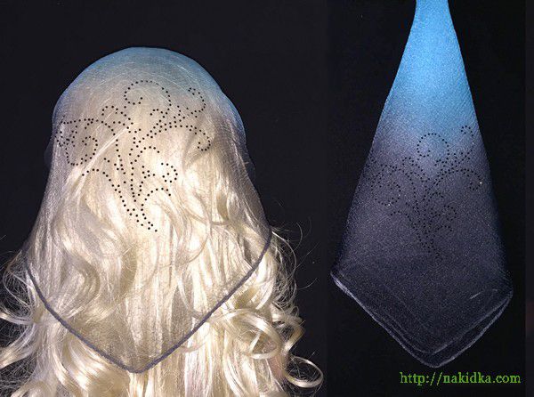 | Голубая с черным двутонная нейлоновая косынка с наклееным черным узором |