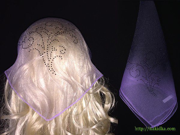 | Черная со светло-фиолетовым двутонная нейлоновая косынка с наклееным черным узором |
