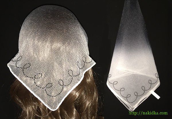 | Черная с белым двутонная нейлоновая косынка с наклееным черным узором |