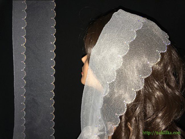 | Белый нейлоновый шарф с наклеенным блестящим узором на волнистой кромке |
