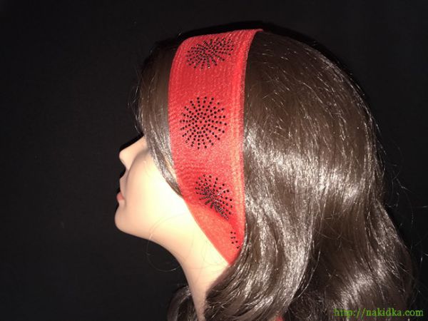 | Красный однотонный нейлоновый шарф-полоска с черным наклеенным узором |