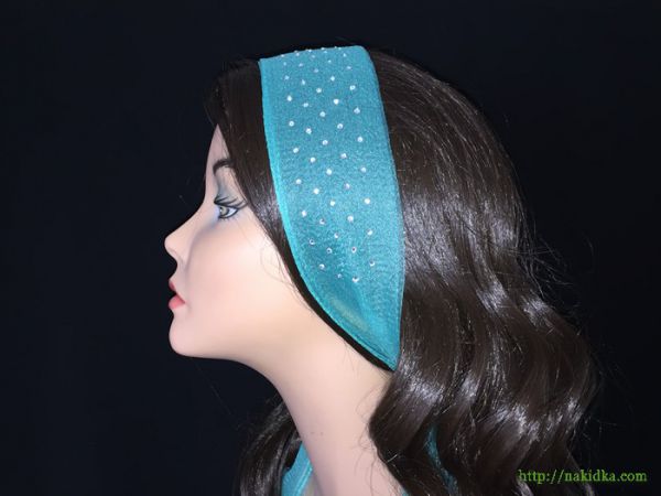 | Зелено-бирюзовый однотонный нейлоновый шарф-полоска с блестящим наклеенным узором |