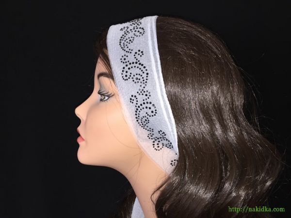 | Белый однотонный нейлоновый шарф-полоска с черным наклеенным узором |