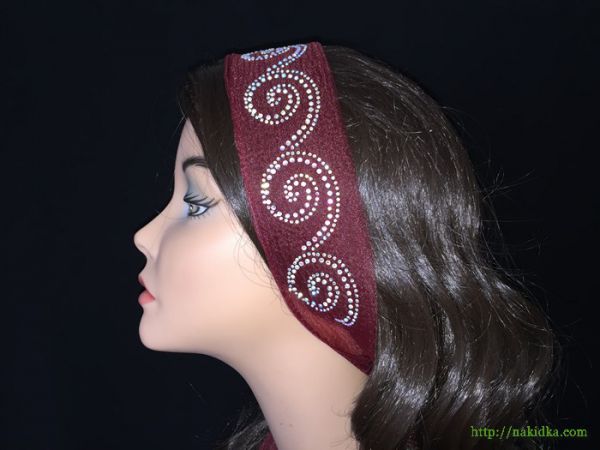 | Бордовый однотонный нейлоновый шарф-полоска с блестящим наклеенным узором |