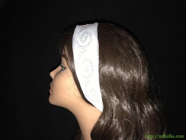 | Белый однотонный нейлоновый шарф-полоска с наклеенным блестящим узором |