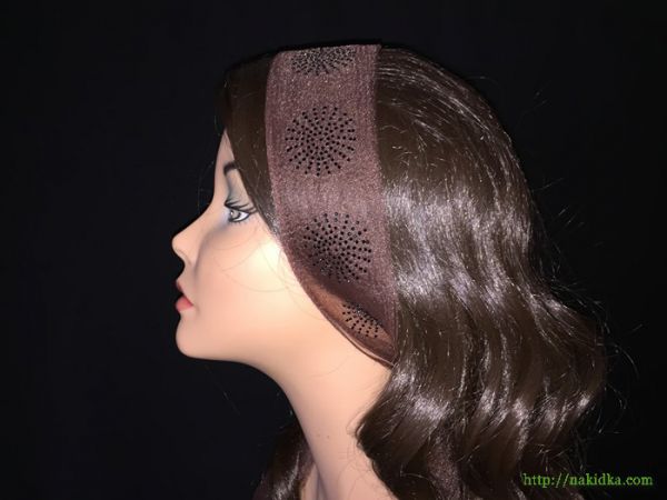 | Коричневый однотонный нейлоновый шарф-полоска с наклеенным черным узором |
