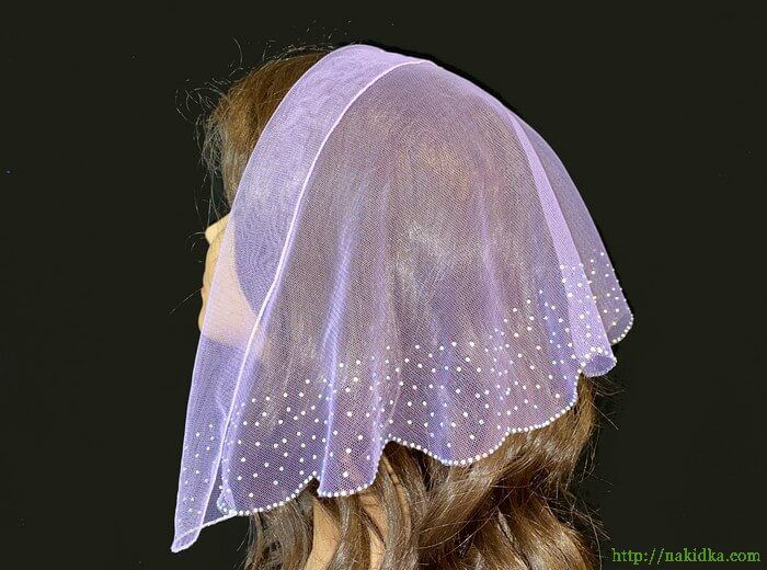 | Светло-фиолетовая легкая фатиновая накидка с наклееным блестящим перламутровым узором |