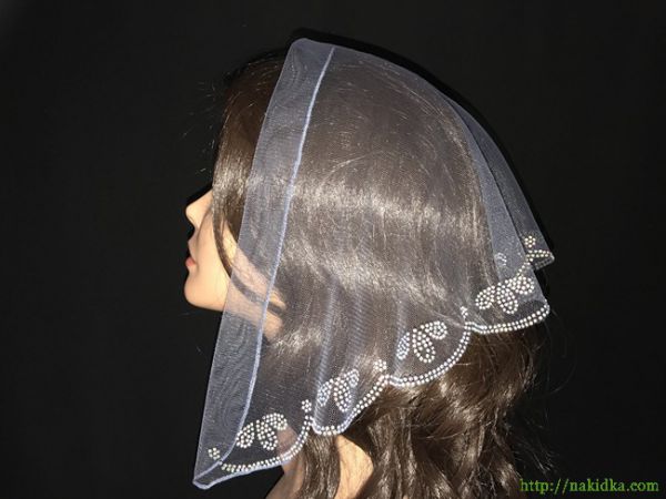 | Серая легкая фатиновая накидка с наклееным блестящим узорoм по краю |