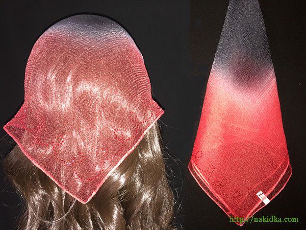 | Красная с черным двутонная нейлоновая косынка с наклееным красным узором |