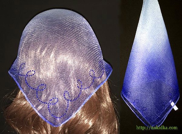 | Голубая с синим нейлоновая косынка с наклееным синим узором |