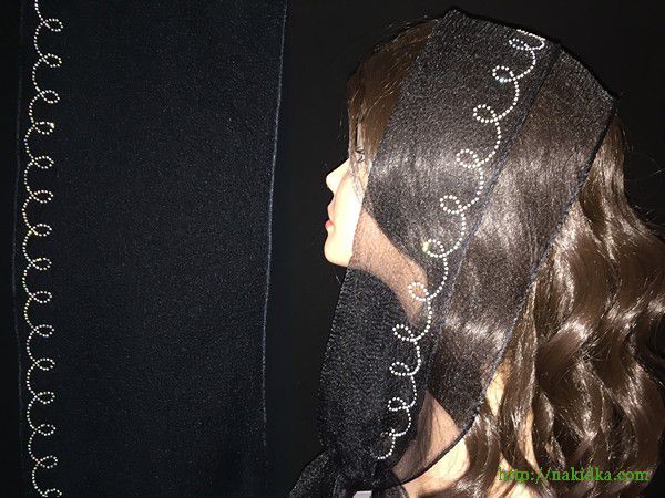 | Черный нейлоновый шарф с наклееным блестящим перламутровым узором |