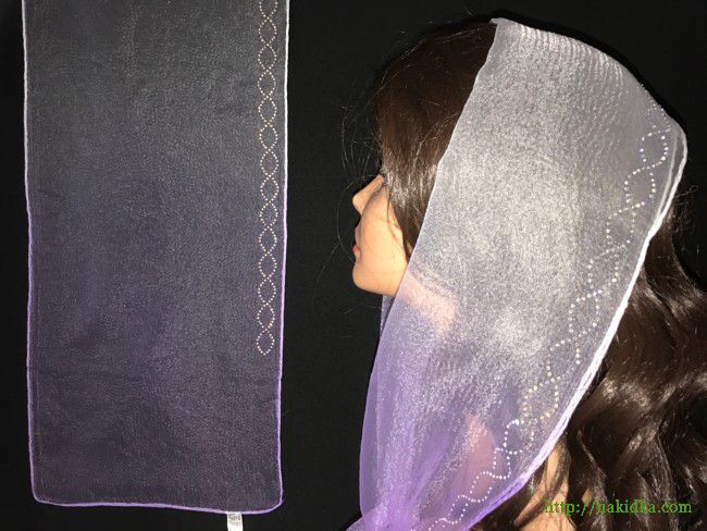 | Белый со светло-фиолетовым утененный шарф с наклеенным блестящим узором |