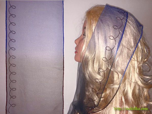 | Утененный синий с черным нейлоновый шарф с наклееным черным узором |