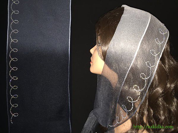 | Утененный узкий бело-черный нейлоновый шарф с наклееным блестящим узором |