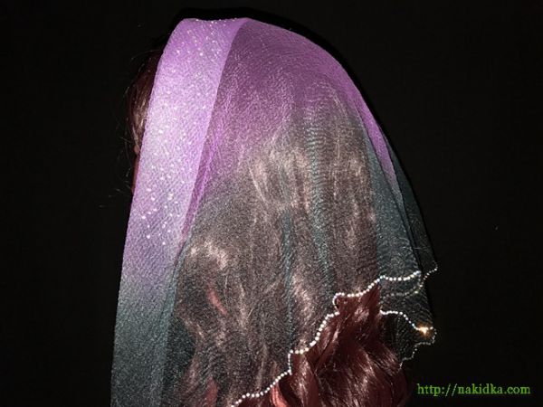 | Фиолетовая с черным двухтонная косынка с блестящими узорами на подвернутом крае и на волнистом ободке |