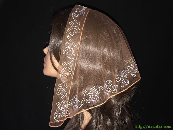 | Светло-коричневая легкая фатиновая накидка с наклееным блестящим узором |
