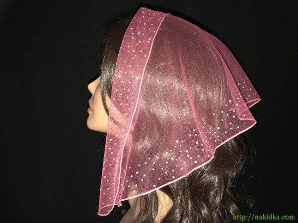 | Коралловая легкая фатиновая накидка с наклееным блестящим узором |