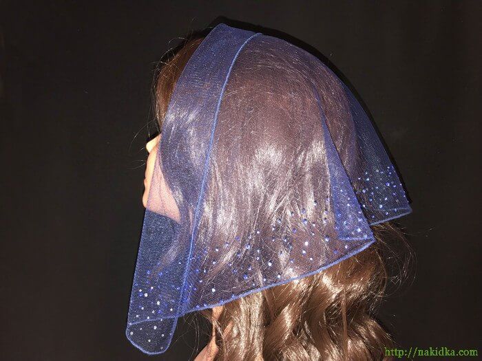 | Темно-синяя легкая фатиновая накидка с наклееными синими камушками |