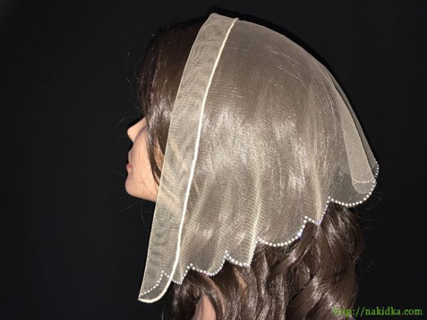 | Бежево-кофейная легкая фатиновая накидка с наклееным блестящим узором по краю |