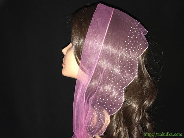 | Темно-розовый легкий фатиновый шарф с наклееным блестящим узором по краю |