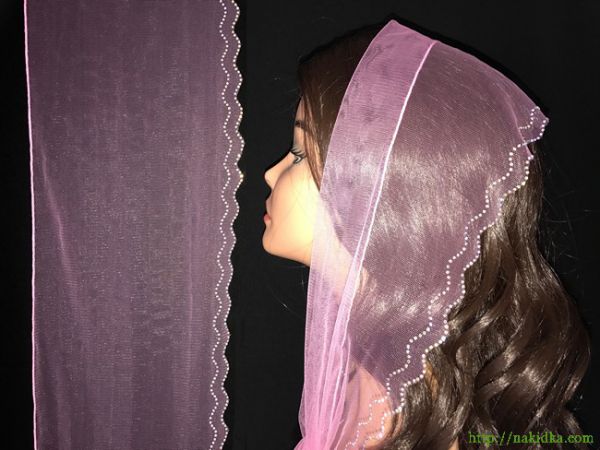 | Розовый легкий фатиновый шарф с наклеенным блестящим узором и вырезанным ободком |