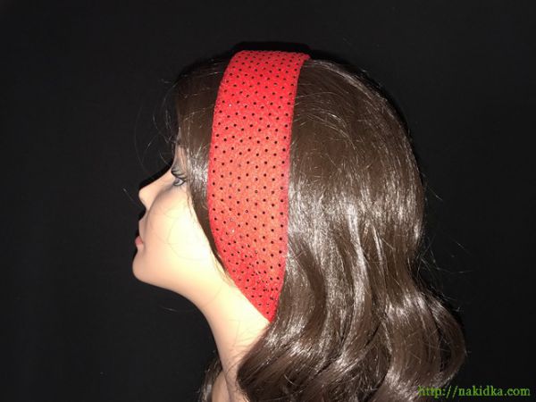 | Красный однотонный нейлоновый шарф-полоска с черным наклеенными камушками |
