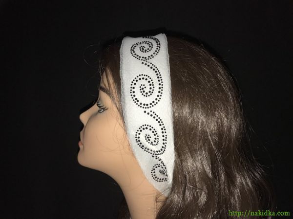| Белый однотонный нейлоновый шарф-полоска с черным наклеенным узором |