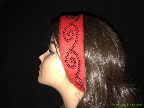 | Красный однотонный нейлоновый шарф-полоска с черным наклеенным узором |