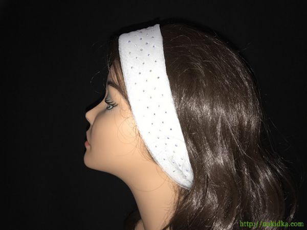 | Белый однотонный нейлоновый шарф-полоска с блестящими наклеенными камушками |