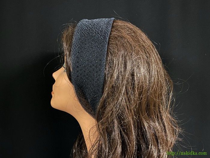 | Черный однотонный нейлоновый шарф-полоска с наклеенным черными камушками |