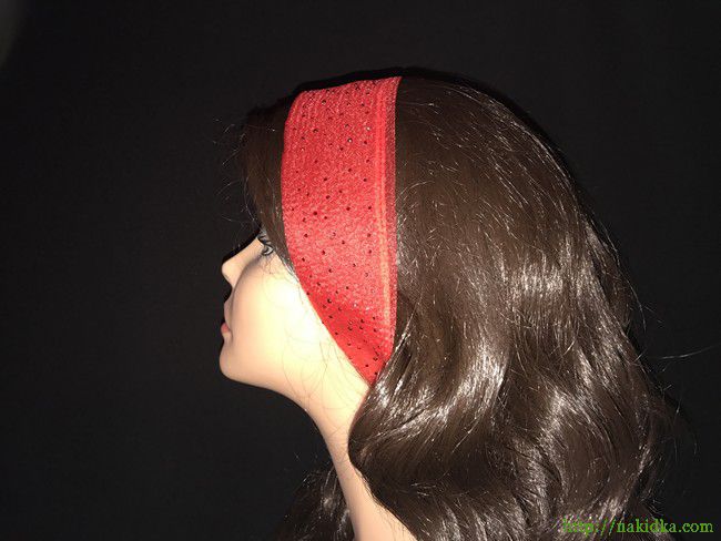 | Красный однотонный нейлоновый шарф-полоска с блестящими красными камушками |