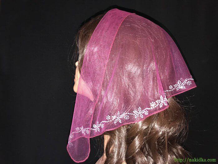 | Темно-бордовая легкая фатиновая накидка с наклееным блестящим узором |
