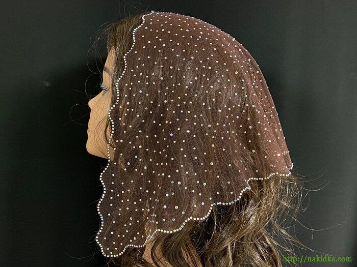 | Коричневая легкая фатиновая накидка с наклееными блестящими камушками и узором по волнистому краю |
