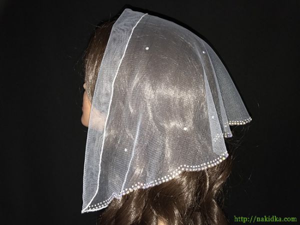 | Серая легкая фатиновая накидка с наклееными блестящими камушками и узором по краю |