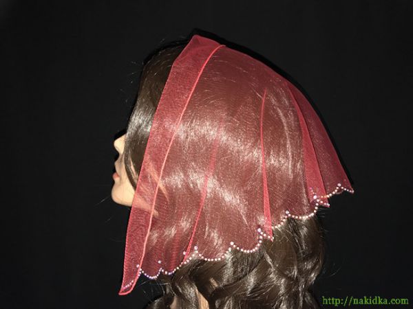 | Красная легкая фатиновая накидка с наклееным блестящим узором по краю |