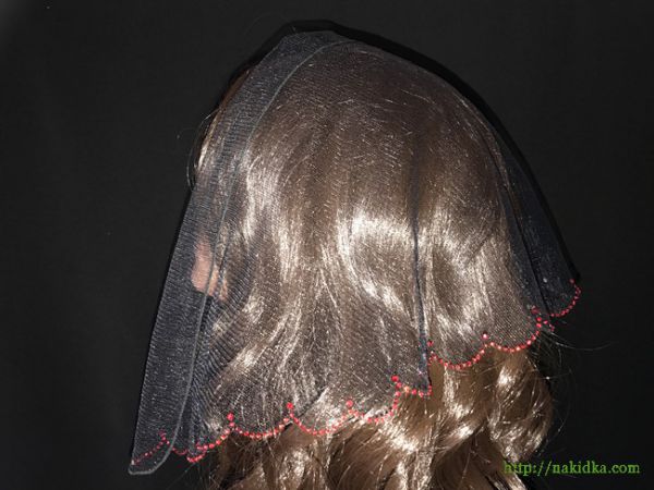 | Черная фатиновая накидка с наклеенным красным узором на нижней кромке |