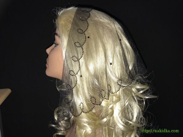 | Черная легкая фатиновая накидка с наклеенным черным узором по вырезанному краю |