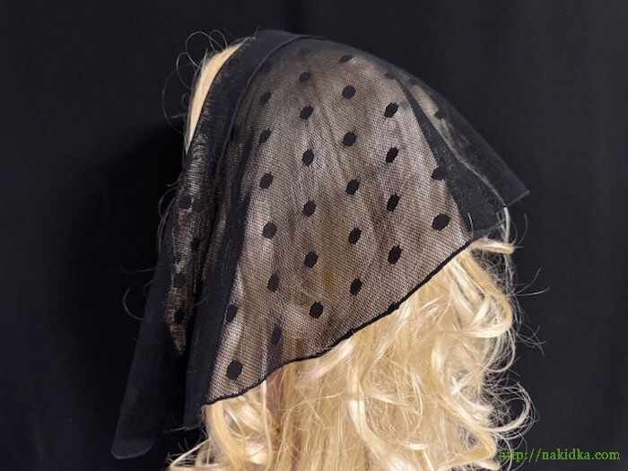 Черная плотная фатиновая накидка с черными горошками