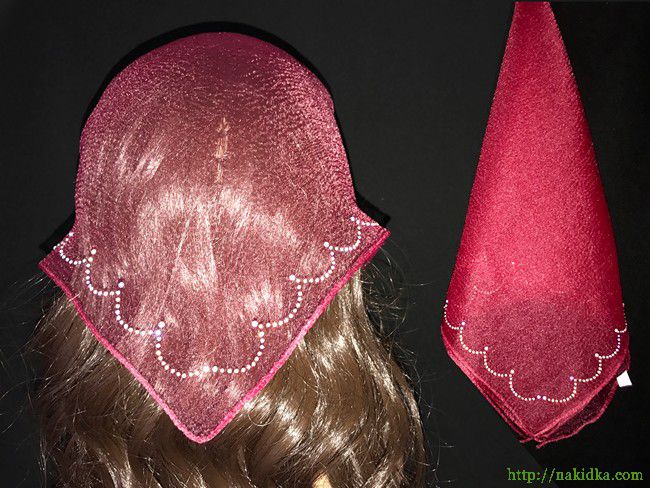 | Бордовая нейлоновая косынка с наклеенным блестящим волнистым узором |