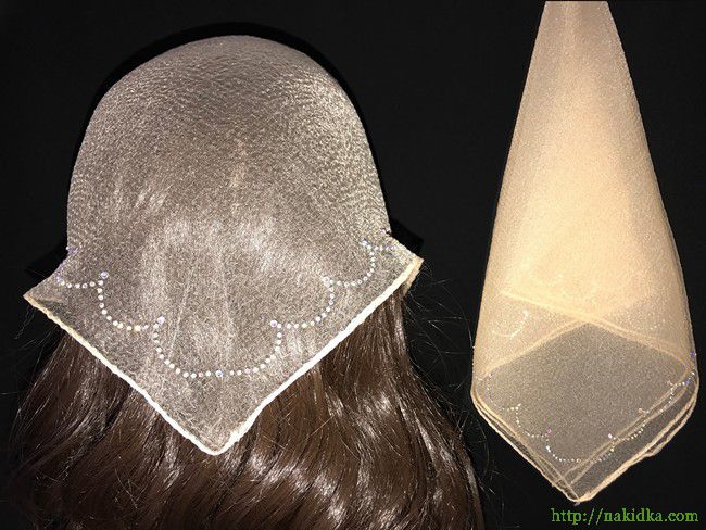 | Абрикосовая нейлоновая косынка с наклеенным блестящим волнистым узором |
