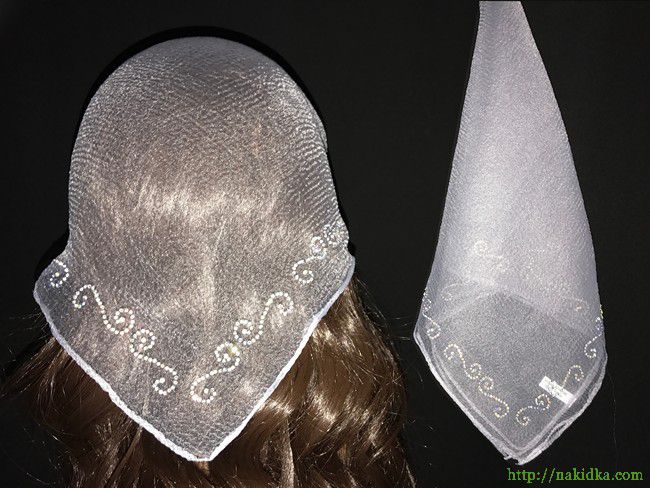 | Серая нейлоновая косынка с наклеенным блестящим завитым узором |