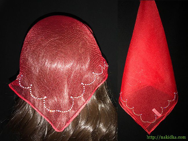 | Красная нейлоновая косынка с наклеенным блестящим волнистым узором |